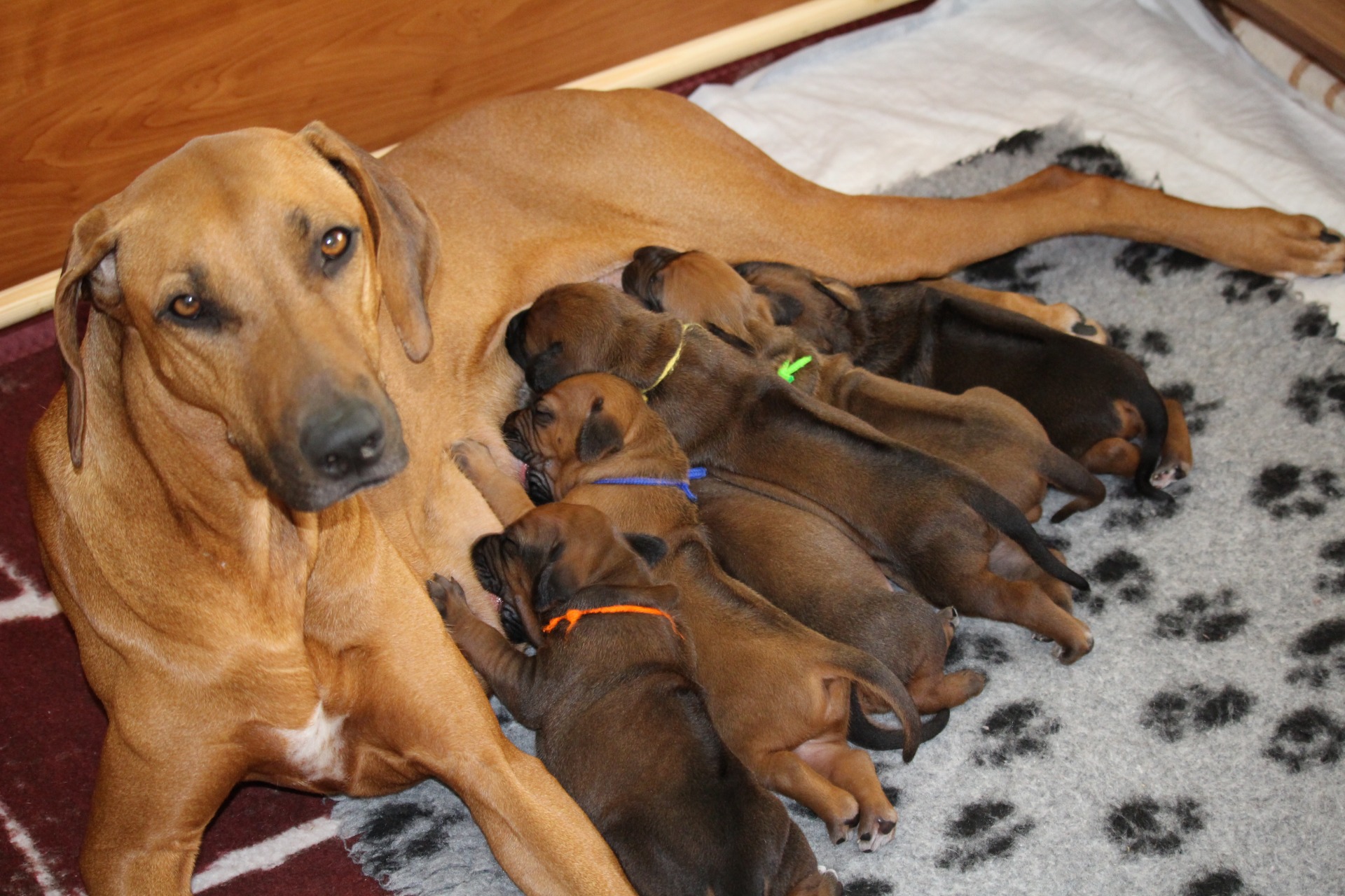Po zdravotní kontrole na veterině, proběhla včera kontrola celého vrhu hlavní poradkyní chovu ČKRR paní Zdeňkou Masnerovou. Všechna štěňátka jsou standardní, dobře živená, socializovaná. Obdiv sklidily krásné dlouhé ridge.